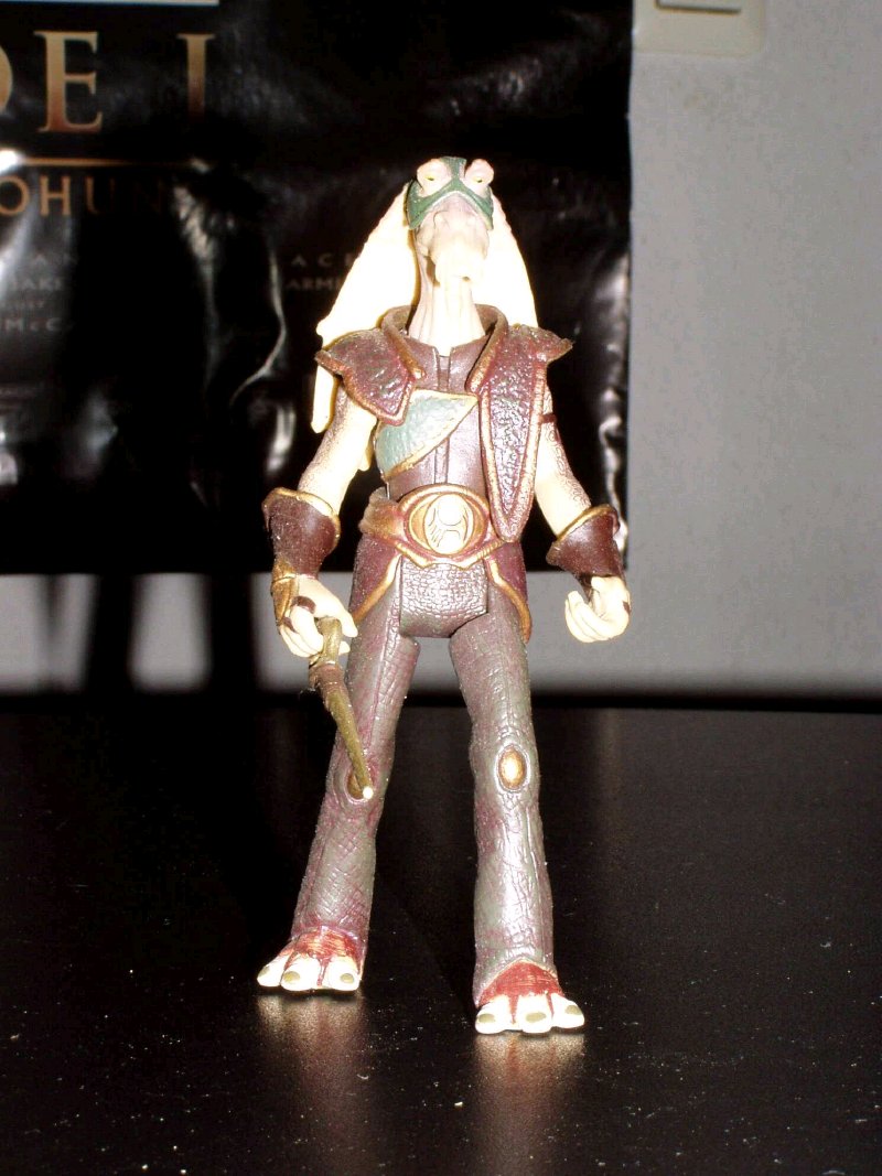 | Captain Tarpals gehört zu den aphibischen Gungans auf Naboo. Zu dieser Figur gehört ebenfalls ein Sprachchip. | Nochmal Darth Maul, allerdings diesmal mit nur einer Klinge. Wie nicht anders zu erwarten gehört auch hierzu ein Sprachhip. | |||