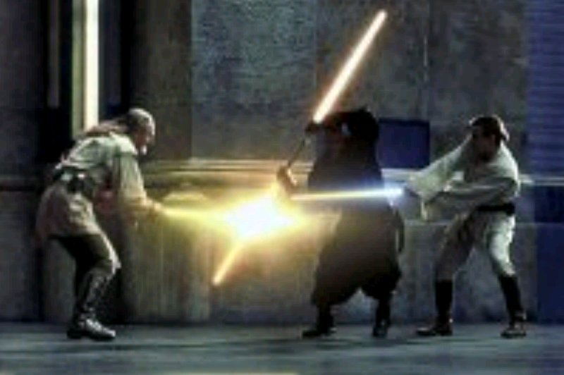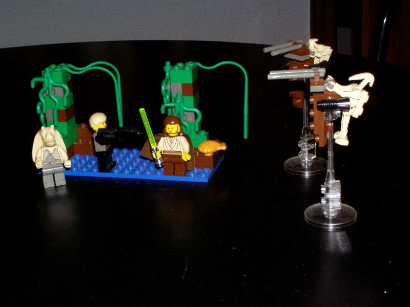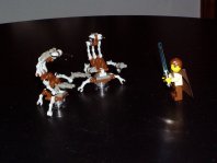 | Qui-Gonn Jinn verteidigt sich auf dem Schiff der Neimoidianer gegen Droidekas | Ich vermute mal, dass soll Padme im Kampfdress sein, sicher bin ich mir allerdings nicht | |||